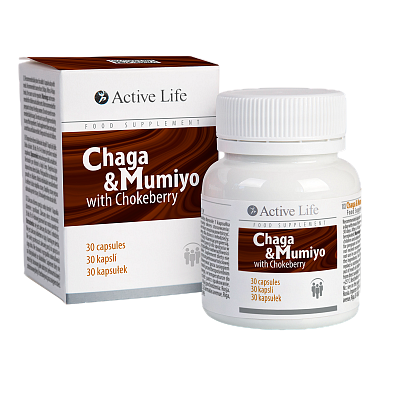 Zloženie (1 kapsula): extrakt z plodnice čagy (1:10) prášok 225 mg, koncentrát z mumiyo prášok 180 mg, želatína (obal kapsuly), extrakt z plodov arónie čiernej (1:10) prášok 22,5 mg, maltodextrín.