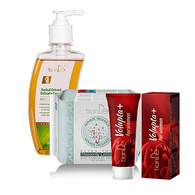 Bestsellery sortimentu TianDe – gély pre intímnu starostlivosť a vložky, ktoré sa starajú nielen o ženský komfort, ale aj o celkovú pohodu. Ultra tenké vložky pre špeciálne dni z kvalitných materiálov, ktoré pomáhajú predchádzať nepríjemnému efektu zaparenia, a gél pre intímnu starostlivosť s bylinnými extraktmi, ktorý podporuje prirodzenú rovnováhu intímnych partií – kúpte si sadu pre kvalitnú hygienu a ako bonus získajte gél pre posilnenie zmyslových zážitkov.